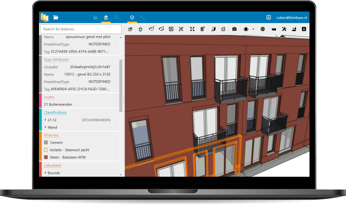 All IFC attributes (also of IFC4 types), property sets, properties, classifications, materials, quantities are available. In BIM.works we call all of these together "features"